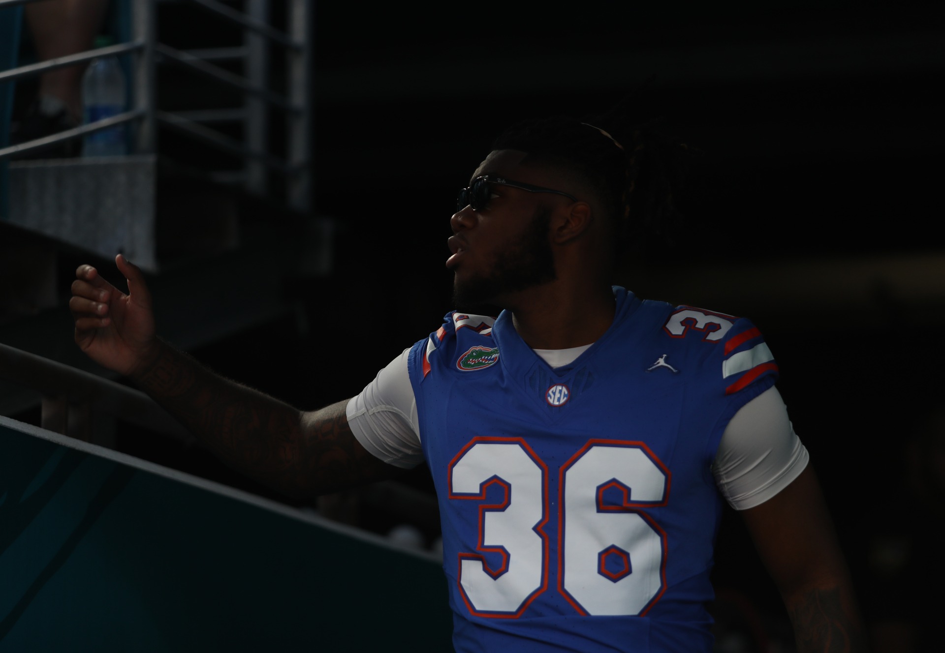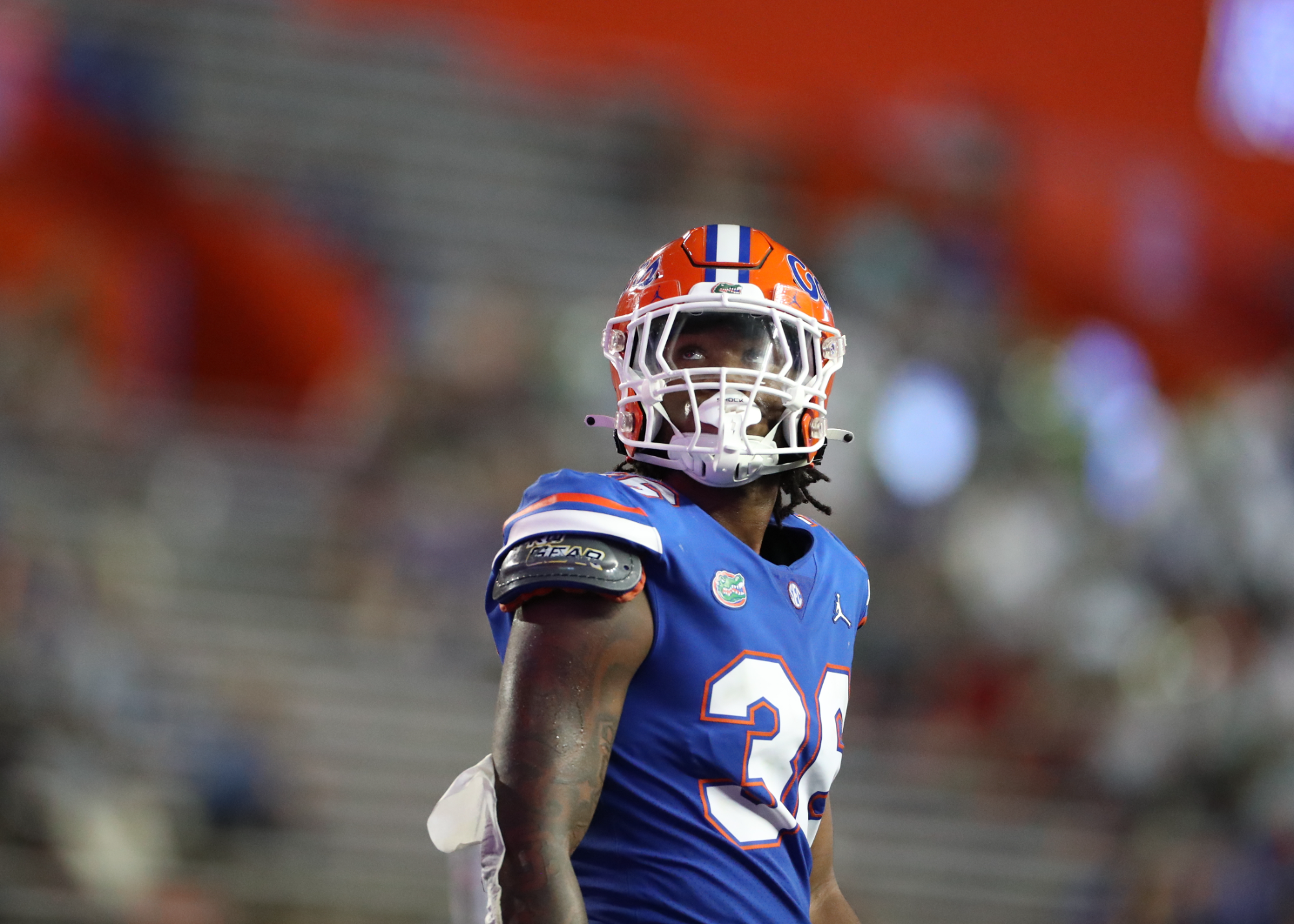 Bryce, helmet off, gazes at the empty field. Victory or defeat, he carries it all—the weight of every play, every tackle.
