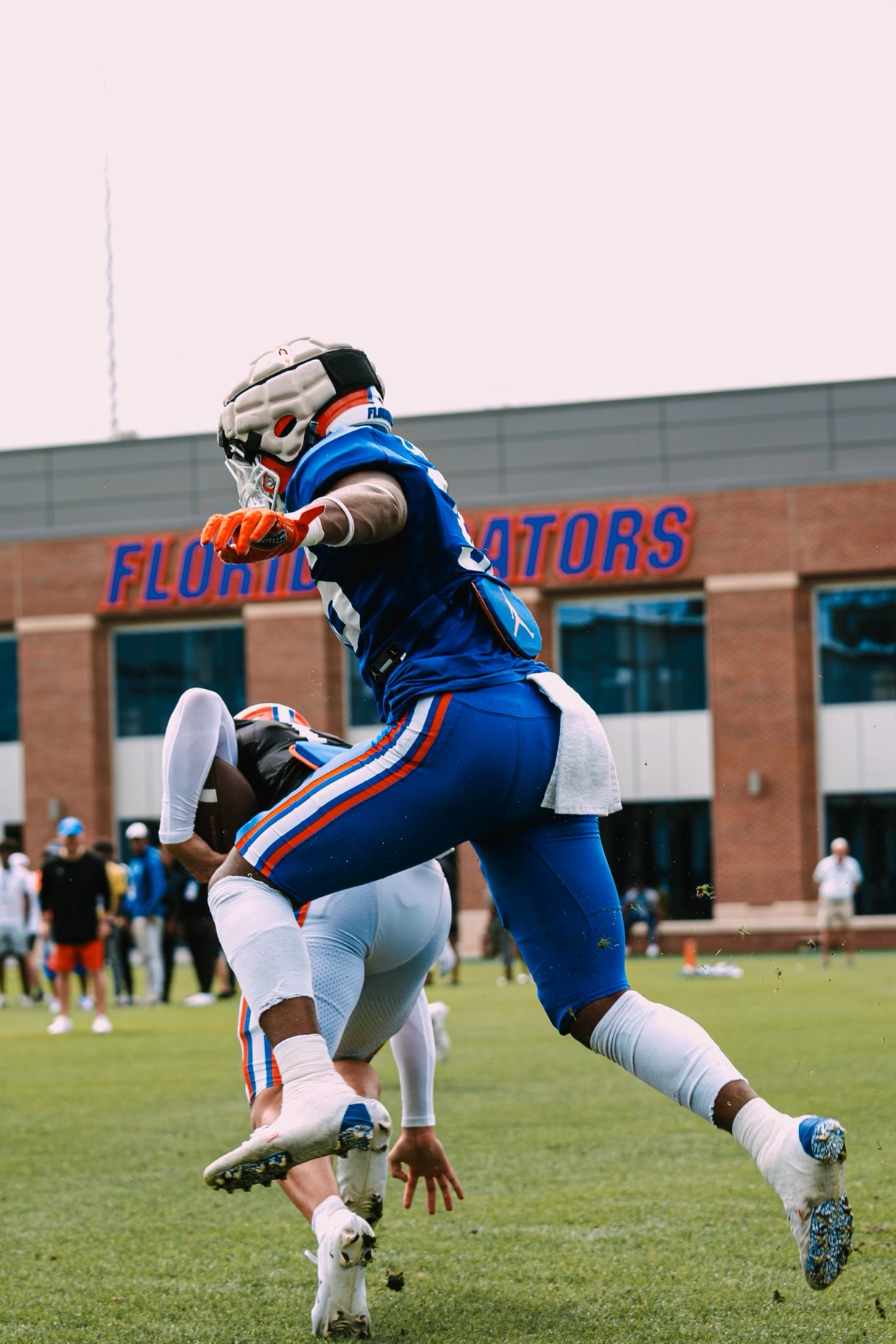 Bryce lunges forward, arms outstretched, bringing down the opposing running back just inches from the first down marker. The crowd erupts—a symphony of cheers and adrenaline.